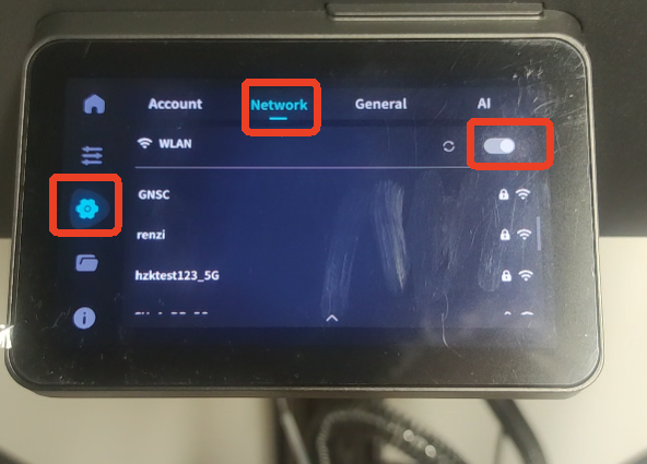 - Go to Settings → Network, and turn on the network function.
