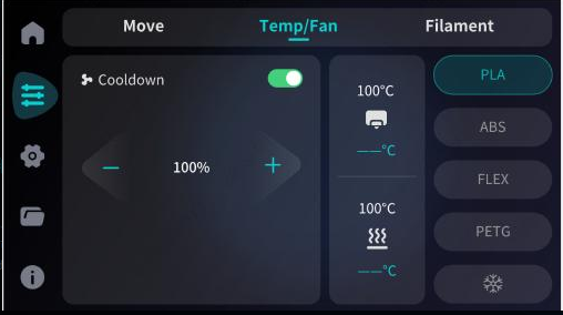 Users can manually heat the nozzle and the heatbed respectively. One-click preheating is also supported. If you wish to stop heating during the process, click "Cool Down" to cancel.