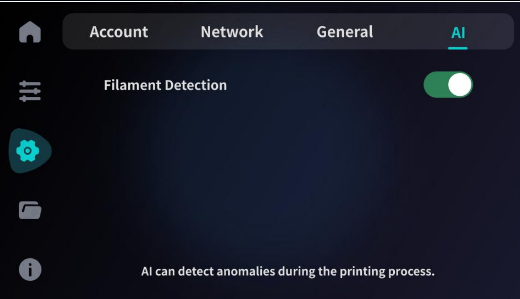 Smart Features: Filament Run-out Detection (Filament Sensor) monitors whether the filament is broken or exhausted. It can detect anomalies during printing and respond accordingly, effectively avoiding print failures caused by material shortage.