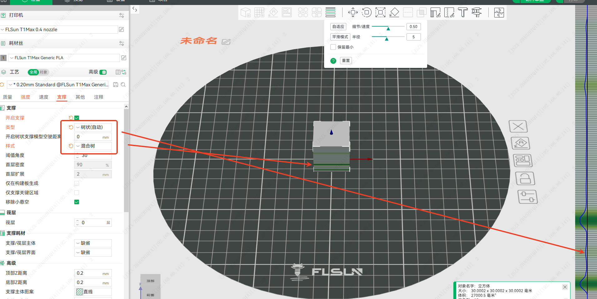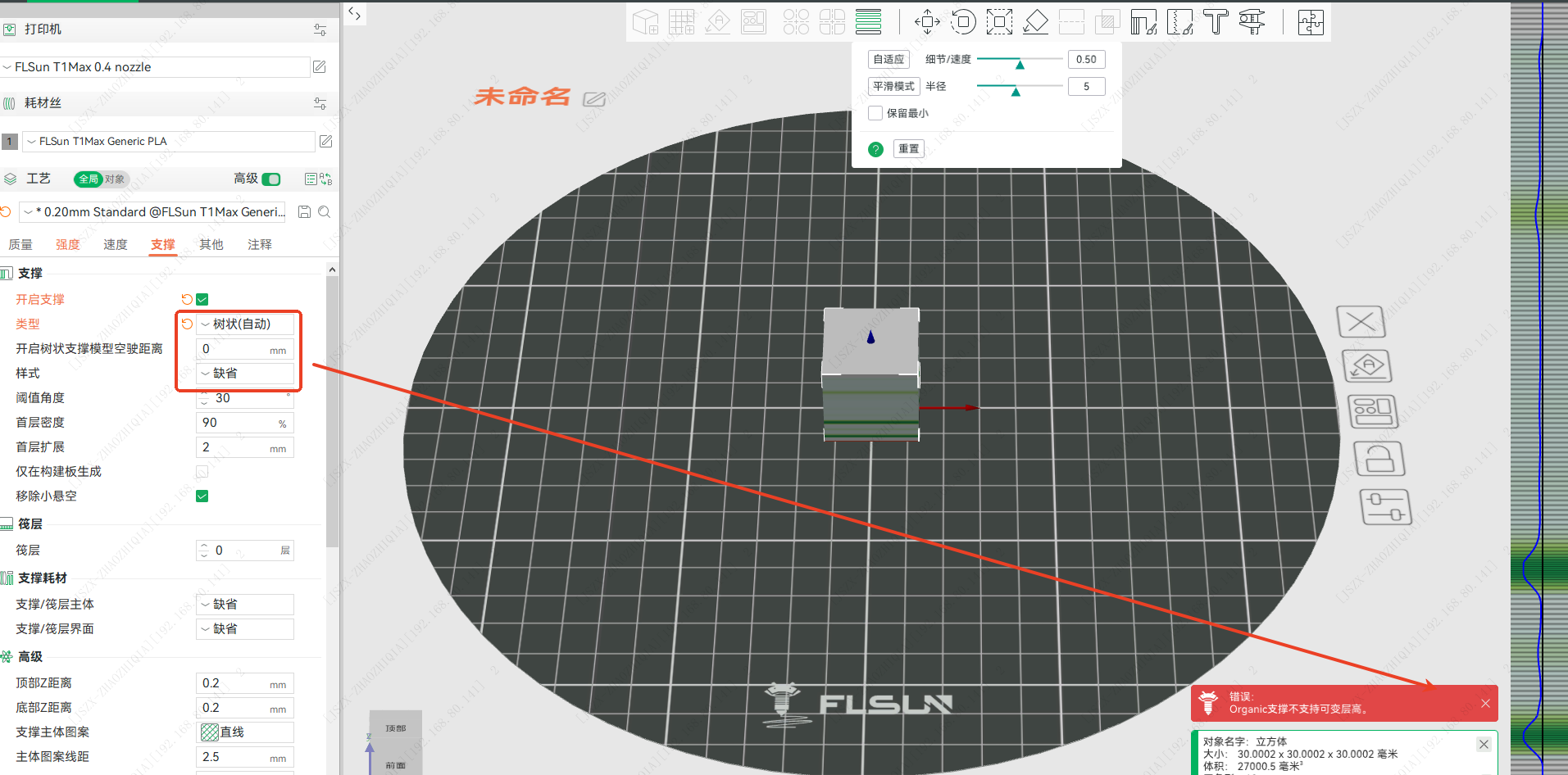 1、新增1个机型,包含两个配置,其中T1Max不带擦喷嘴功能 ,T1MaxCleanNozzle带自动擦喷嘴功能; 2、稀疏填充“网格”模式划线路径优化(由每层默认45度切换方向,改为固定方向不切换); 3、树状支撑默认支持可变层高(由原来默认“有机树”改为 默认“混合树”); 4、填缝规则改变:仅对底部和顶部填充时,忽略微小间隙仅对中间层生效,顶部和底部还是保留全部填充;